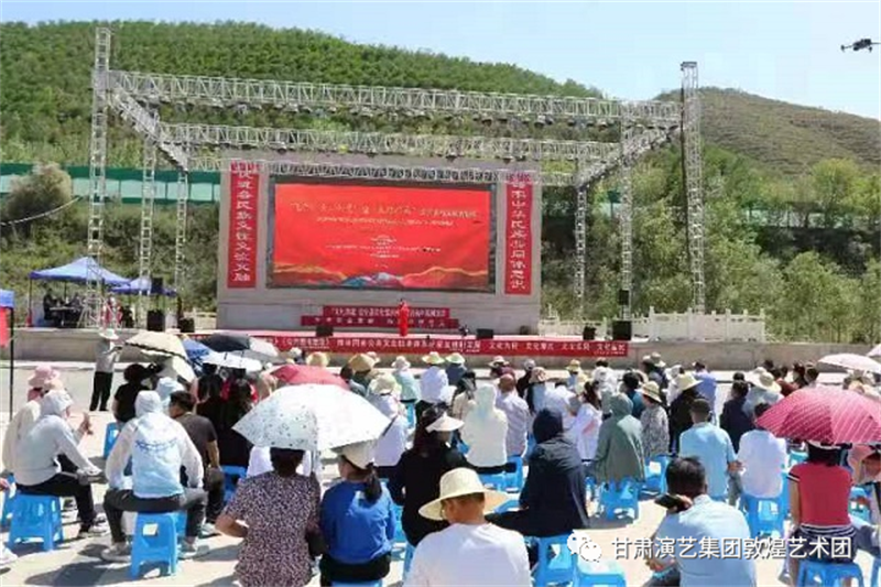 6月21日,由省文旅廳組織,甘肅演藝集團敦煌藝術團具體實施,為白銀市會寧縣會師鎮(zhèn)鐘鼓樓大型易地扶貧搬遷安置區(qū)人民群眾,送去了一場以“隴原兒女心向黨”暨“大地歡歌”全省鄉(xiāng)村活動年為主題的文藝演出。