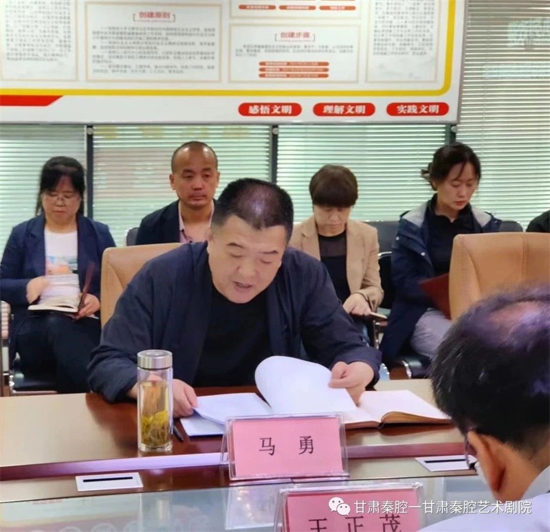 在隨后召開的座談會上,劇院黨總支書記、院長馬勇介紹了目前院團基本概況、近年來主要業(yè)務工作開展情況、人員結構和人才培養(yǎng)現(xiàn)狀。長期以來,劇院一直圍繞中心,服務大局,圓滿完成了省委、省文旅廳、省文聯(lián)、甘肅演藝集團交辦的各項重大任務。以創(chuàng)作生產(chǎn)優(yōu)秀作品為中心,不斷加強藝術工作管理,積極拓寬優(yōu)秀藝術作品傳播渠道,大力培養(yǎng)高水平藝術人才,在出戲、出人、出效益方面做出了積極探索。但隨著戲曲行業(yè)人才的不斷流失,對劇院乃至甘肅戲曲市場沖擊很大,也直接導致優(yōu)秀傳統(tǒng)劇目出現(xiàn)了無人演、無人創(chuàng),青黃不接的局面,劇院面對著經(jīng)費短缺和創(chuàng)新矛盾的巨大壓力。黨總支委員、藝術總監(jiān)蘇鳳麗和黨總支委員、副院長陳永勝等分別介紹了院團近年來在文藝創(chuàng)作、人才培養(yǎng)、演出交流、深化改革等方面取得的成果和轉(zhuǎn)企改制后劇院發(fā)展中遇到的瓶頸和困難。