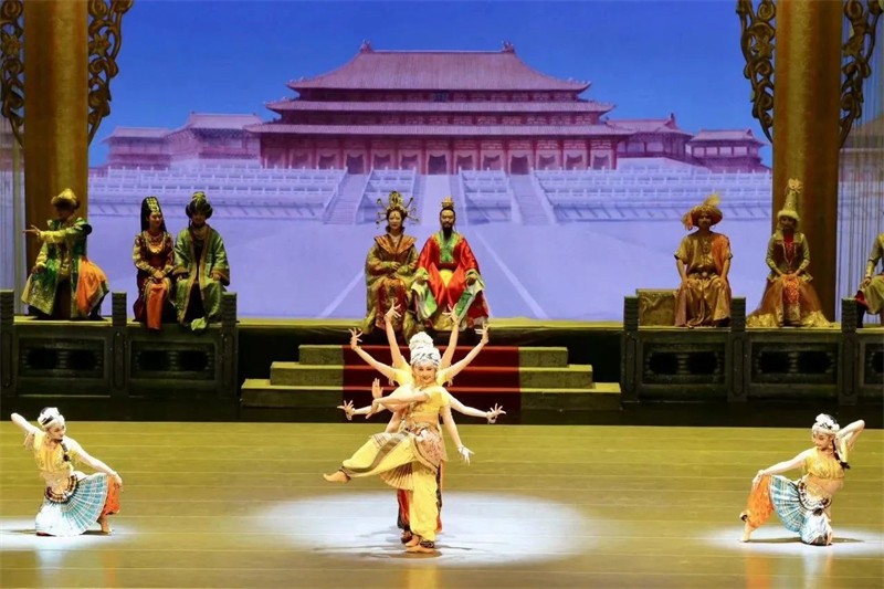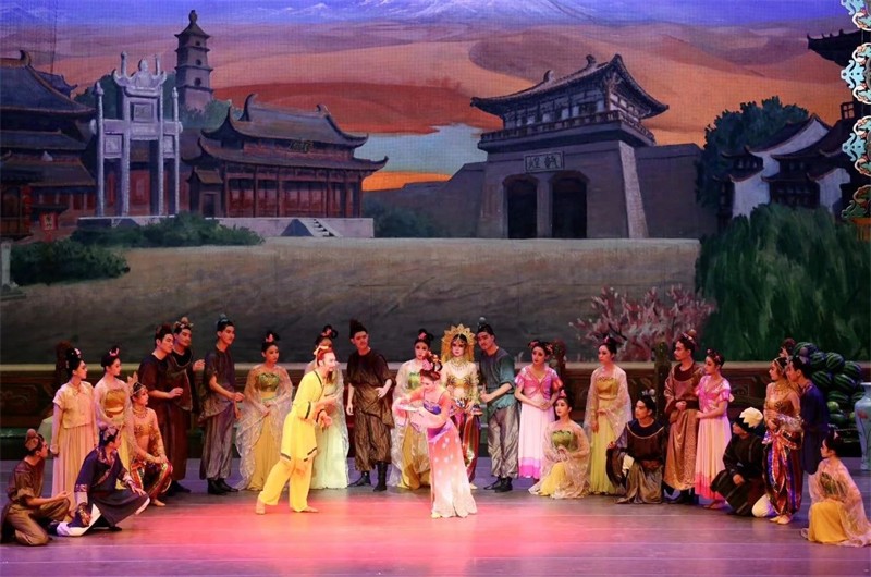 舞劇《絲路花雨》是以中國唐朝極盛時期為背景,取材于舉世聞名的絲綢之路和敦煌壁畫,集胡旋舞、霓裳羽衣舞以及琵琶舞、波斯舞、黑巾舞、酒舞、盤上舞等中國古典舞蹈于一體,別出心裁地將中國古典舞蹈與中國戲曲、西方芭蕾舞、現(xiàn)代舞等藝術(shù)文化元素融為一體,開創(chuàng)了“敦煌舞”這一全新的藝術(shù)流派,首演于1979年,曾先后訪問40多個國家和地區(qū),截止目前演出3899場,觀眾531萬余人次,被媒體贊譽為“活的敦煌壁畫,美的藝術(shù)享受”“此舞只應(yīng)天上有,人間難得看幾回”“中國民族舞劇的典范”。