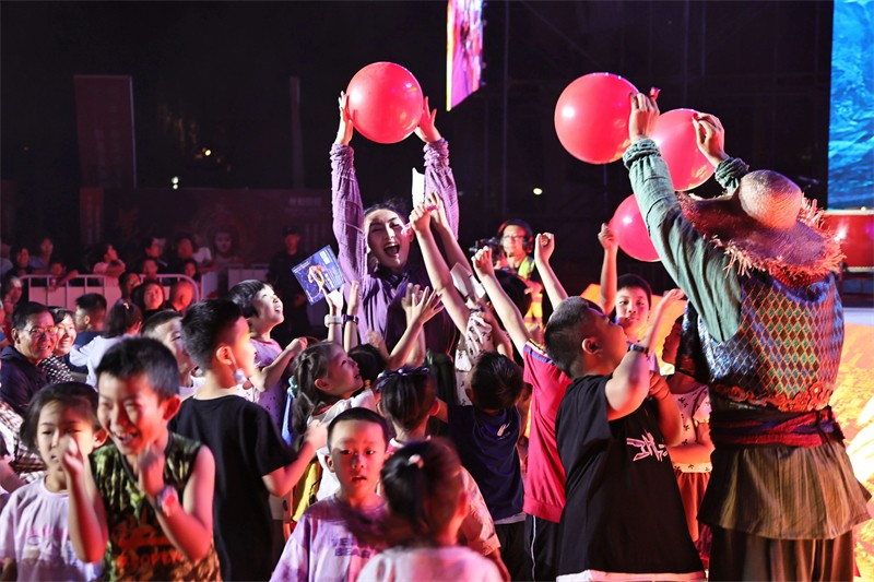 8月21日晚,甘肅演藝集團(tuán)話劇院(甘肅兒童劇院)首部原創(chuàng)兒童劇《黃河邊的故事》在第四屆黃河之濱藝術(shù)節(jié)主會(huì)場(chǎng)----蘭州市體育文化廣場(chǎng)精彩上演。