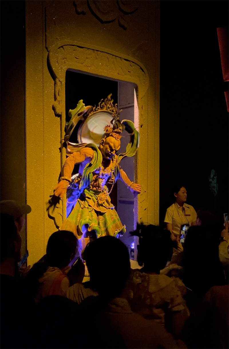 全球首部洞窟式沉浸體驗(yàn)劇《樂動敦煌》,溯源敦煌文化,借助對莫高窟壁畫、藏經(jīng)洞古籍的深度解讀梳理,活化敦煌古樂器、古樂譜研發(fā)成果,采用全息投影、3D威亞等高科技手段,以全沉浸式的呈現(xiàn)方式,演繹了西域少年白歆追尋藝術(shù)的動人故事。