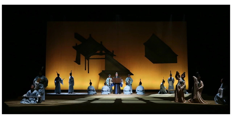 秦腔《蔡文姬》植根于甘肅豐富厚重的文化沃土,定位于“皈依漢民族精神家園”的思想命題,通過文姬離漢與歸漢這個古老的故事,以對“漢字”、“漢簡”、“漢記”的特殊情感形成人物行動的強烈驅(qū)動力量,由此觀照和詮釋漢文化強大的向心力、感染力以及漢民族對于家國的歸屬感、認同感、尊嚴感、榮譽感,體現(xiàn)華夏民族之間的文化交流關(guān)系,深刻詮釋黃河文化內(nèi)涵,具有重大理論與現(xiàn)實意義。