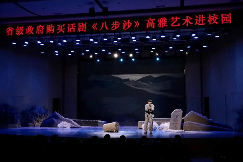 10月10日、11日晚,西北師范大學(xué)音樂廳里再次響起了這感人肺腑的熟悉旋律,現(xiàn)場(chǎng)的大學(xué)生們一起哼唱,臺(tái)上臺(tái)下相融共鳴。這是省級(jí)政府購(gòu)買高雅藝術(shù)進(jìn)校園,甘肅演藝集團(tuán)話劇院原創(chuàng)話劇《八步沙》走進(jìn)西北師范大學(xué)演出的情境。