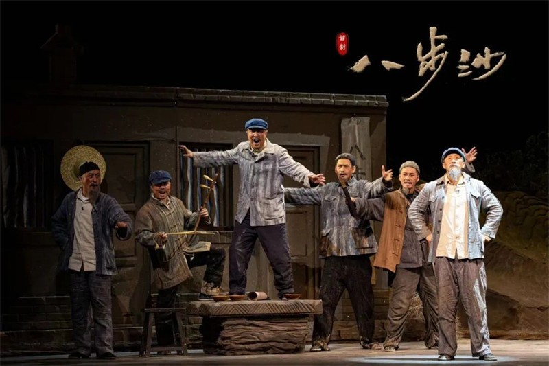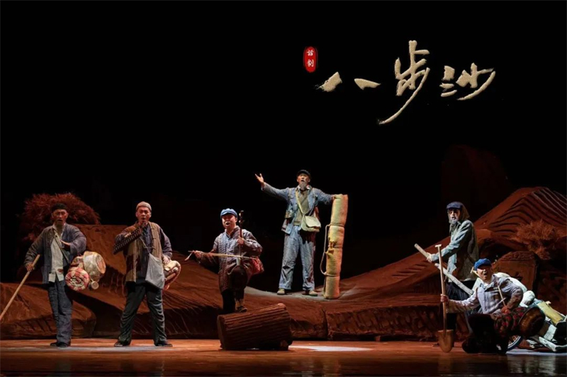 話劇《八步沙》根據(jù)中宣部命名的“時(shí)代楷?!焙汀白蠲缞^斗者”榮譽(yù)稱號(hào)獲得集體——甘肅武威古浪八步沙“六老漢”三代人治沙造林先進(jìn)群體真實(shí)事跡創(chuàng)作,以舞臺(tái)藝術(shù)生動(dòng)再現(xiàn)了八步沙“六老漢”治沙造林的感人事跡。話劇《八步沙》充分發(fā)揮話劇藝術(shù)直面現(xiàn)實(shí)生活書寫時(shí)代風(fēng)采的優(yōu)勢(shì),既有生動(dòng)感人的故事,又有詼諧幽默的笑點(diǎn),更不乏令人感動(dòng)的“淚點(diǎn)”,生動(dòng)地表現(xiàn)了“六老漢”創(chuàng)造幸福人生,追尋探究人生價(jià)值的真諦。