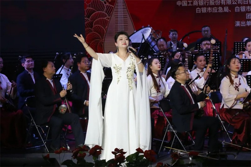 為了提升民族交響盛宴的觀賞性和藝術性,本場演出采用現(xiàn)代手法演繹民族經(jīng)典音樂作品,涵蓋民族管弦樂《慶典序曲》《花兒主題隨想》《七彩之和》《風之歌》《春華秋實》《歡樂歌》《金蛇狂舞》《絲綢之路》、女聲二重唱《節(jié)日歡歌》、男聲獨唱《草原上升起不落的太陽》、女聲獨唱《蘆花》及二胡齊奏《新賽馬》等,用現(xiàn)代音樂元素展示民族音樂的無限魅力。這一晚美麗的“銅城”白銀,不僅有九曲黃河與絲綢之路交匯融合,還有歡聲笑語和動人音符交織飛揚,更有滿懷祝福與美好期冀交融共存!