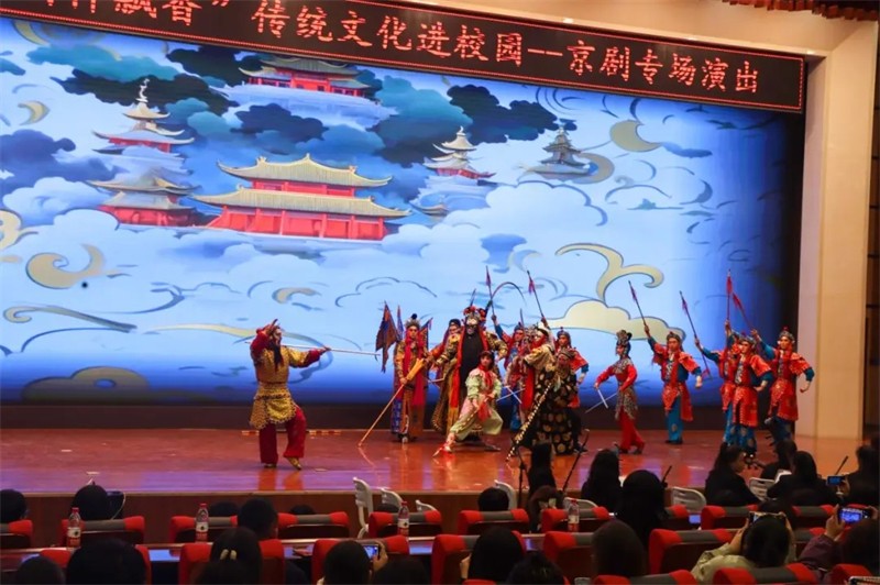 為弘揚(yáng)傳統(tǒng)文化,提升當(dāng)代大學(xué)生對(duì)京劇藝術(shù)的理解與鑒賞能力,4月1日,甘肅演藝集團(tuán)敦煌藝術(shù)團(tuán)與蘭州財(cái)經(jīng)大學(xué)聯(lián)合舉辦了“京韻流轉(zhuǎn) 國(guó)粹飄香 傳統(tǒng)文化進(jìn)校園——京劇專場(chǎng)演出”,為廣大師生呈現(xiàn)了一場(chǎng)京劇藝術(shù)盛宴。
