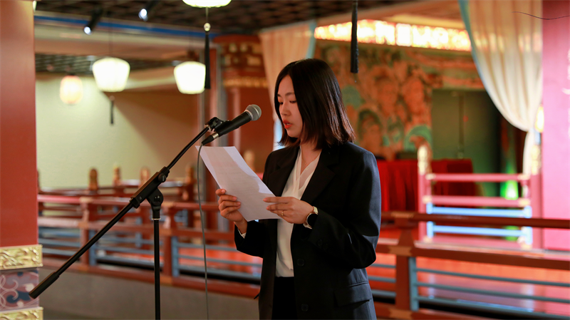 授旗儀式開(kāi)始,甘肅演藝集團(tuán)文旅公司黨總支委員、團(tuán)支部書(shū)記張靜宣讀《關(guān)于成立青年突擊隊(duì)一隊(duì)、二隊(duì)的決定》,宣布公司青年突擊隊(duì)正式成立。