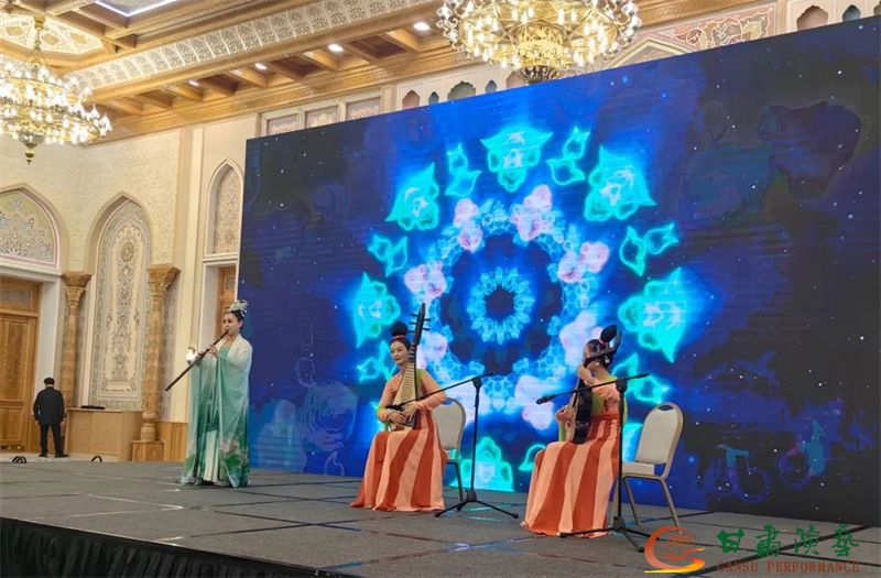 9月17日下午,藝術(shù)家們馬不停蹄前往烏茲別克斯坦撒馬爾罕絲綢之路國際旅游中心,用極具敦煌特色的舞蹈和器樂演奏同撒馬爾罕國際科技大學(xué)的師生進(jìn)行了跨越語言的交流,本場演出由中華人民共和國駐烏茲別克斯坦大使館、甘肅省文化和旅游廳主辦,撒馬爾罕國際科技大學(xué)承辦。