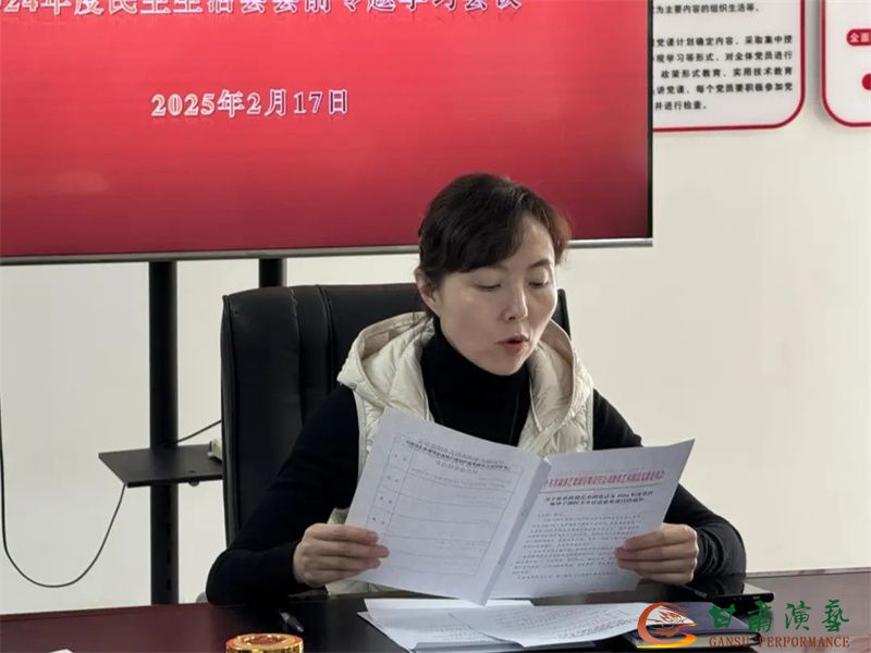 2月17日,甘肅演藝集團敦煌藝術(shù)團黨總支召開理論學(xué)習暨2024年度民主生活會會前專題學(xué)習會,黨總支書記、團長許蕊主持會議并講話。