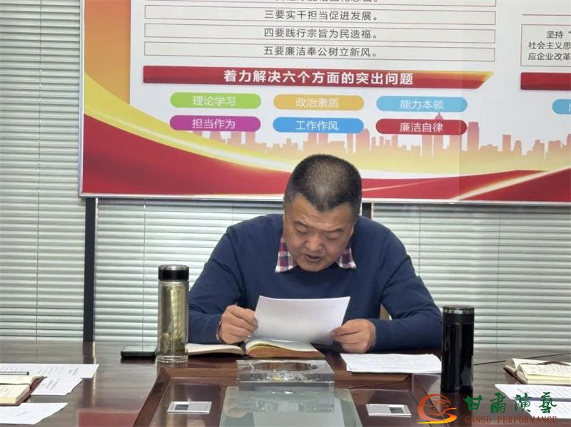為深學(xué)細(xì)悟篤行習(xí)近平文化思想,牢牢把握正確政治方向、輿論導(dǎo)向、價(jià)值取向。2月24日下午,甘肅演藝集團(tuán)秦腔藝術(shù)劇院黨總支開(kāi)展“學(xué)習(xí)貫徹習(xí)近平文化思想,讓傳統(tǒng)戲曲在基層煥發(fā)光彩”主題黨日活動(dòng)?;顒?dòng)由劇院黨總支書(shū)記、藝術(shù)總監(jiān)蘇鳳麗主持。甘肅演藝集團(tuán)副總經(jīng)理、秦腔藝術(shù)劇院院長(zhǎng)馬勇,劇院其他班子成員、全體黨員、中層干部參加。