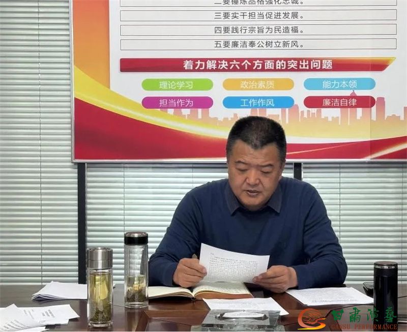 3月26日下午,甘肅演藝集團(tuán)秦腔藝術(shù)劇院召開深入貫徹中央八項規(guī)定精神學(xué)習(xí)教育動員部署會。深入學(xué)習(xí)貫徹習(xí)近平總書記重要講話和重要指示精神,研究部署學(xué)習(xí)教育工作。劇院黨總支書記、藝術(shù)總監(jiān)蘇鳳麗主持會議并作動員部署。甘肅演藝集團(tuán)副總經(jīng)理、秦腔藝術(shù)劇院院長馬勇,劇院其他班子成員,在蘭黨員、中層干部參加會議。