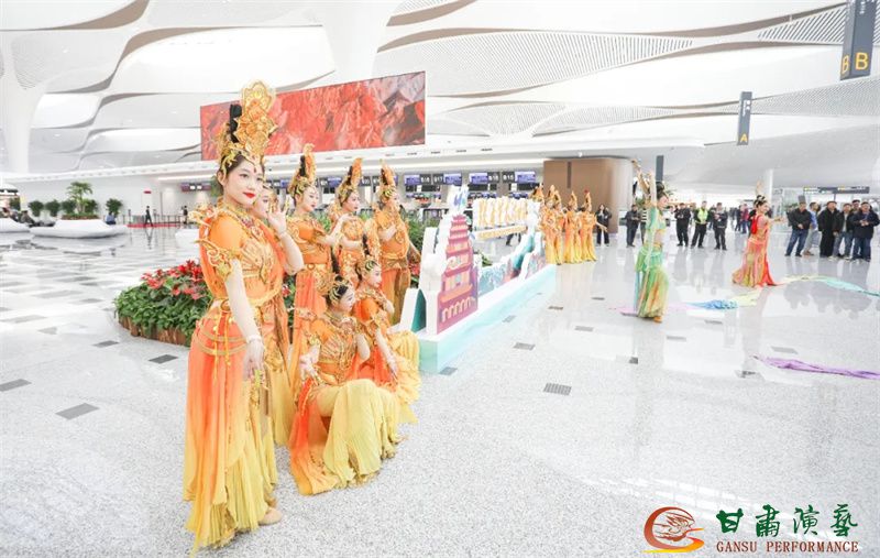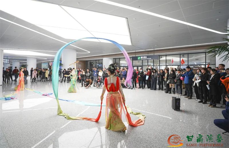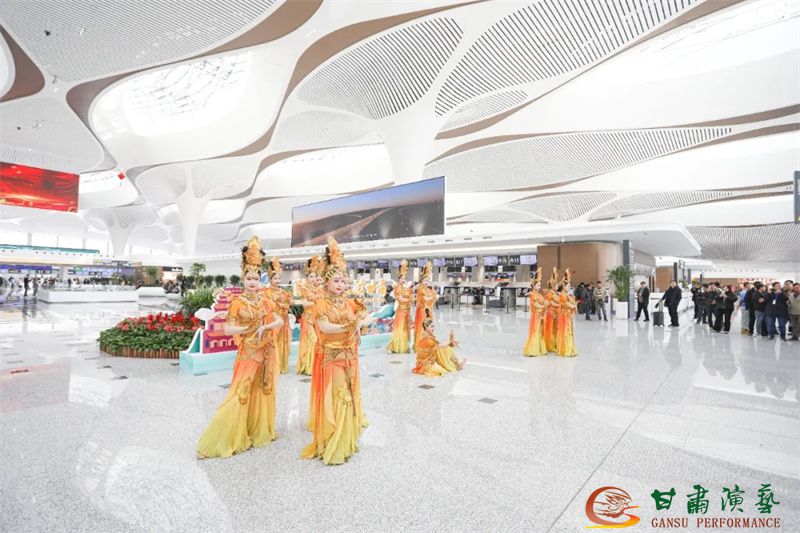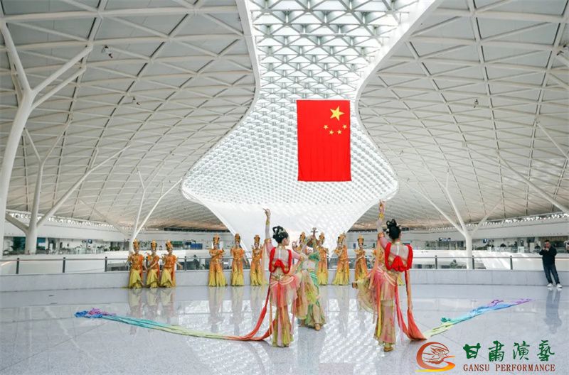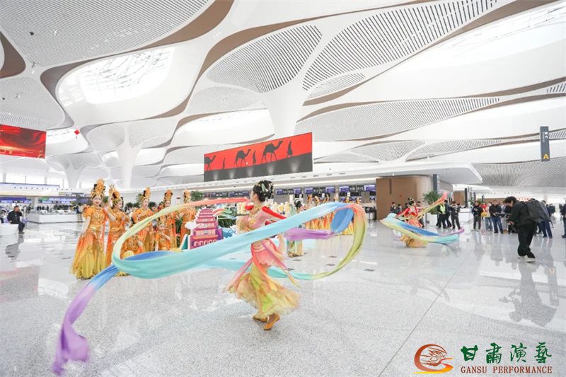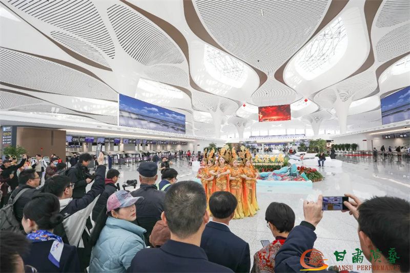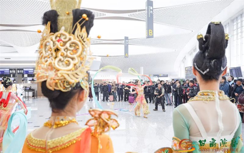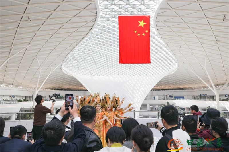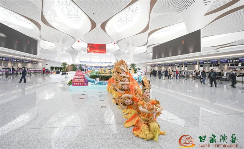 3月20日,蘭州中川國(guó)際機(jī)場(chǎng)T3航站樓正式投入運(yùn)營(yíng)。值此歷史性時(shí)刻,由甘肅省文化和旅游廳主辦,以甘肅演藝集團(tuán)歌舞劇院為班底聯(lián)合甘肅省歌劇院、甘肅省民族歌舞團(tuán)等多家藝術(shù)院團(tuán)眾多藝術(shù)家聯(lián)合打造的“跟著藝術(shù)游甘肅”快閃與展演活動(dòng)在航站樓內(nèi)盛大舉行,共同為八方旅客呈現(xiàn)了敦煌文化與甘肅多民族文化相融合的多彩地域文化盛宴,以藝術(shù)之名致敬T3航站樓啟航新程。
