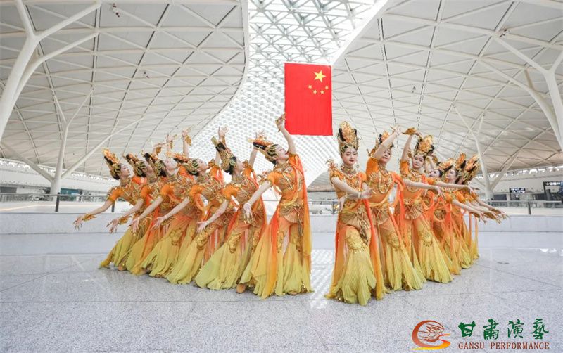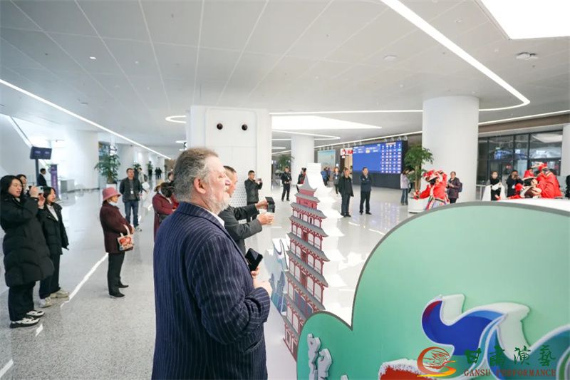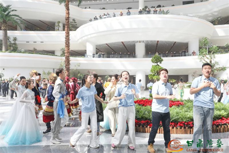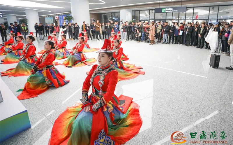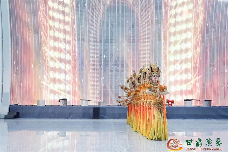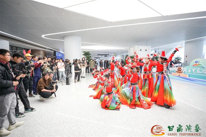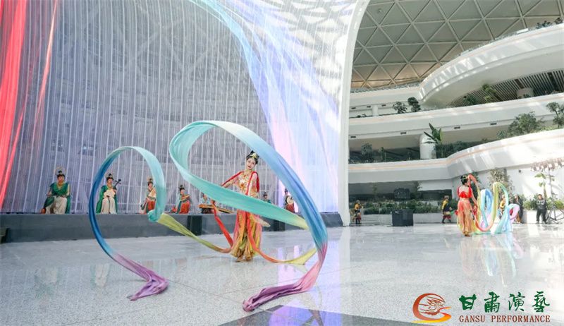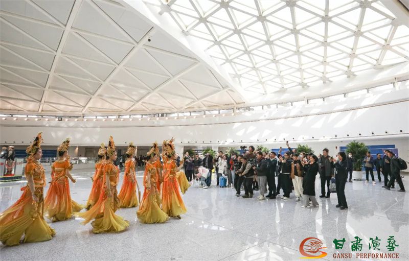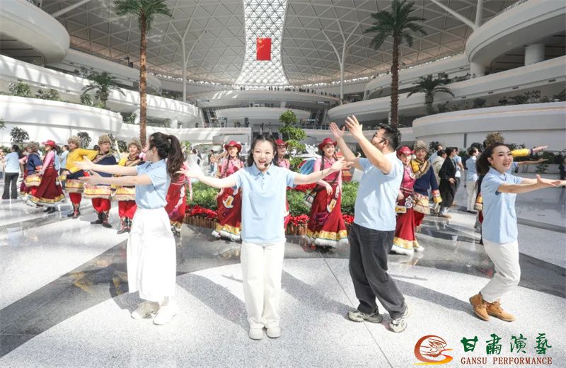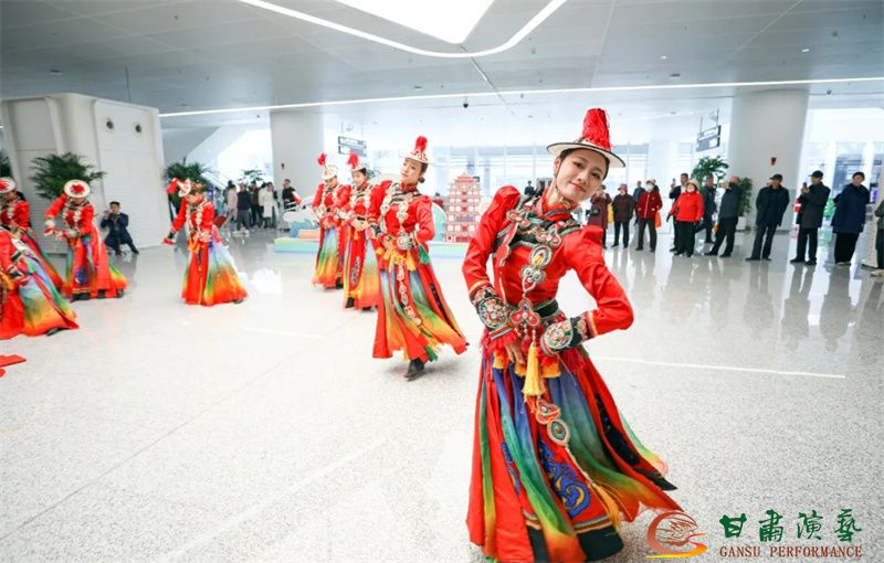 為使旅客和觀眾在這一新城市地標(biāo)建筑中感受不一樣的西北韻味,本次演出匠心獨(dú)運(yùn)注重“創(chuàng)意+體驗(yàn)”,在出發(fā)大廳、到達(dá)大廳、連廊大廳設(shè)三個(gè)快閃點(diǎn),交通樞紐大廳設(shè)置展演舞臺(tái),《絲路花雨》經(jīng)典片段《金光千佛》拉開(kāi)活動(dòng)序幕,舞者身披金色華服,以曼妙舞姿再現(xiàn)莫高窟壁畫中“千佛齊現(xiàn)”的恢宏場(chǎng)景,祈愿往來(lái)游客起落平安,《反彈琵琶長(zhǎng)綢舞》演員手持琵琶翩然起舞,長(zhǎng)綢翻飛間,敦煌藝術(shù)的靈動(dòng)與絲路文明的交融之美躍然眼前,跨越千年的石窟藝術(shù)與航站樓現(xiàn)代設(shè)計(jì)交相輝映,引得旅客紛紛駐足拍攝,裕固族舞蹈《歡騰的草原》展現(xiàn)甘肅人民的熱情好客、淳樸熱情以及甘肅豐富的歷史文化和民俗風(fēng)情,《玄奘西行》《雪域歡歌》《花兒美》則展現(xiàn)出甘肅多元文化的美妙厚重與自然風(fēng)光的壯美神秘。隨著《我把甘肅唱給你聽(tīng)》的旋律漸息,這場(chǎng)跨越時(shí)空的藝術(shù)之旅圓滿落幕,中川機(jī)場(chǎng)T3航站樓化身“流動(dòng)的藝術(shù)展廳”,把“交響絲路·如意甘肅”的壯美畫面描繪在了每一位旅客心中。