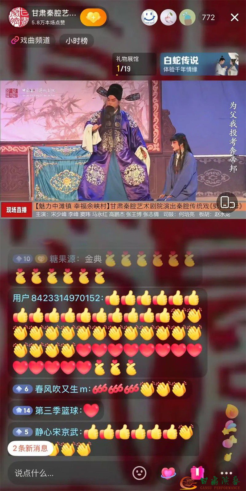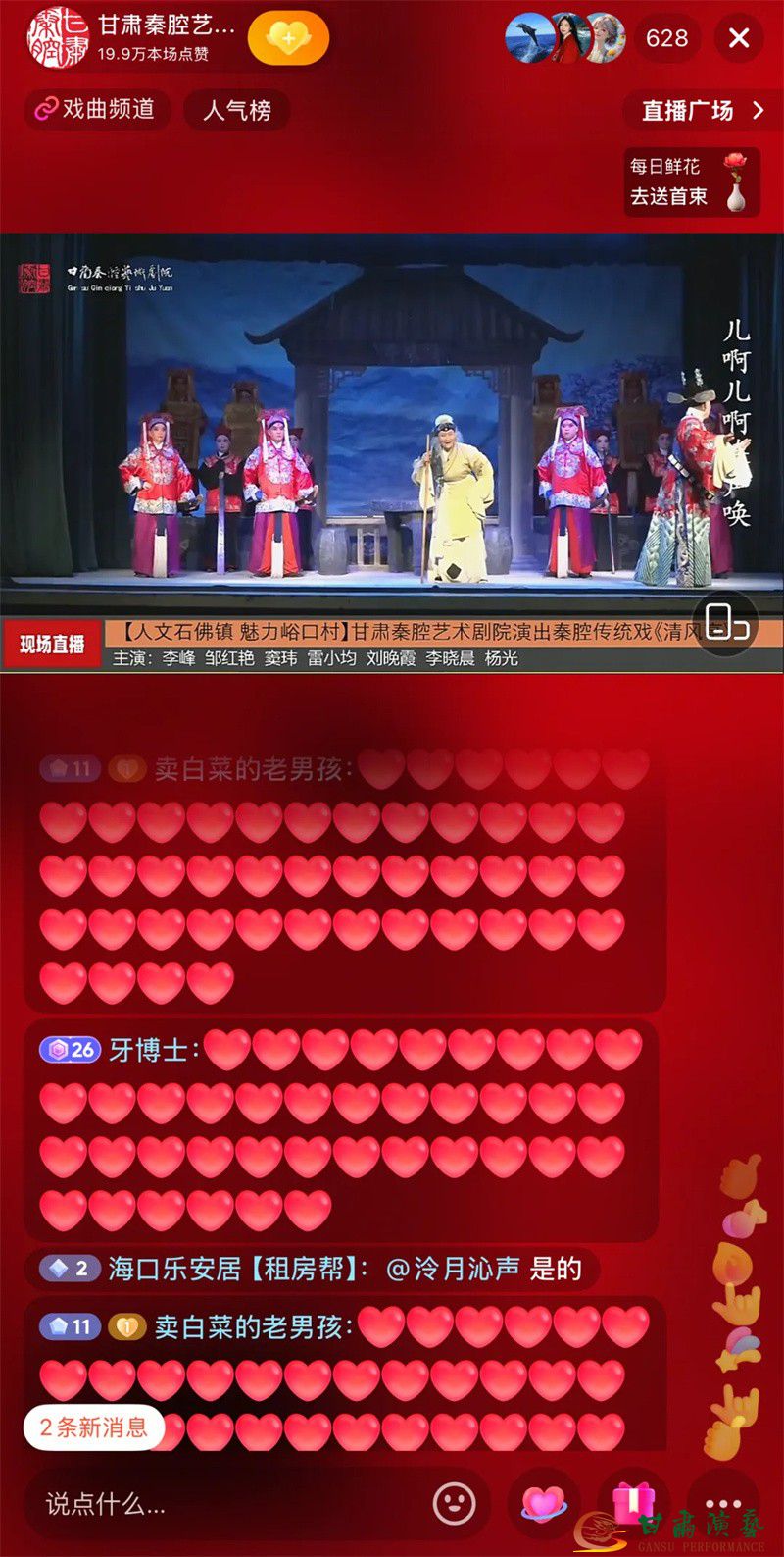 此次峪口村、余峽村巡演中,劇院首次嘗試“線下演出+線上直播”雙線模式,通過(guò)抖音、視頻號(hào)等平臺(tái)同步直播,甘肅演藝集團(tuán)官方平臺(tái)全程轉(zhuǎn)播,讓秦腔藝術(shù)突破地域限制,走進(jìn)千家萬(wàn)戶?!跺幟腊浮贰痘鹧骜x》《鎖麟囊》(青春版)《金沙灘》《清風(fēng)亭》等經(jīng)典劇目輪番上演,臺(tái)上演員水袖翻卷、唱腔鏗鏘,臺(tái)下觀眾掌聲喝彩聲不斷,兩站演出累計(jì)線上觀眾100萬(wàn)人次。網(wǎng)友紛紛留言:“秦腔直播太上頭,老戲新唱有味道!”“隔著屏幕都感受到現(xiàn)場(chǎng)的火熱!”傳統(tǒng)戲曲與新媒體的深度融合,不僅為鄉(xiāng)村百姓送去文化盛宴,更讓年輕群體領(lǐng)略到秦腔的獨(dú)特魅力。