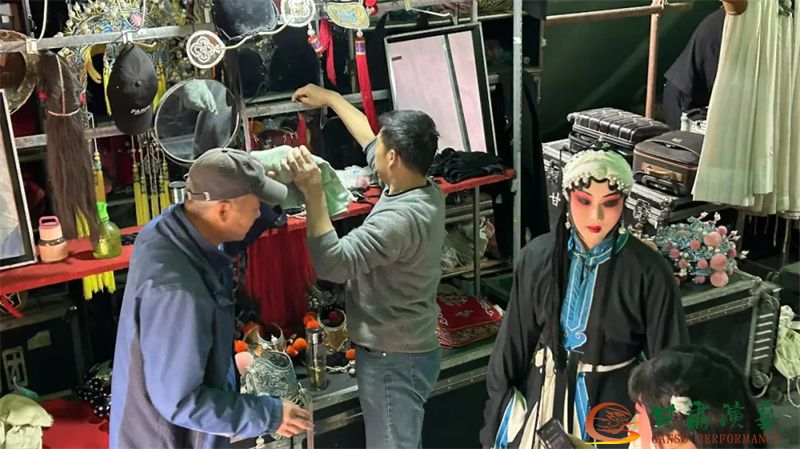 在余峽村演出期間,劇組遭遇沙塵、大風(fēng)等惡劣天氣,舞臺(tái)設(shè)備數(shù)次被狂風(fēng)掀動(dòng),演員妝容被風(fēng)沙浸染。但全體演職人員始終秉持“戲比天大”的信念,頂著撲面黃沙堅(jiān)持完成每一場(chǎng)表演。武戲演員在泥濘的臺(tái)面上翻騰跳躍,文戲演員用清亮嗓音穿透呼嘯風(fēng)聲,幕后工作人員反復(fù)加固設(shè)備、調(diào)整音效,確保演出質(zhì)量分毫未減。村民們撐著傘、裹緊外套圍坐臺(tái)下,與演員們?cè)陲L(fēng)雨中共同完成了一場(chǎng)令人動(dòng)容的“文化之約”。