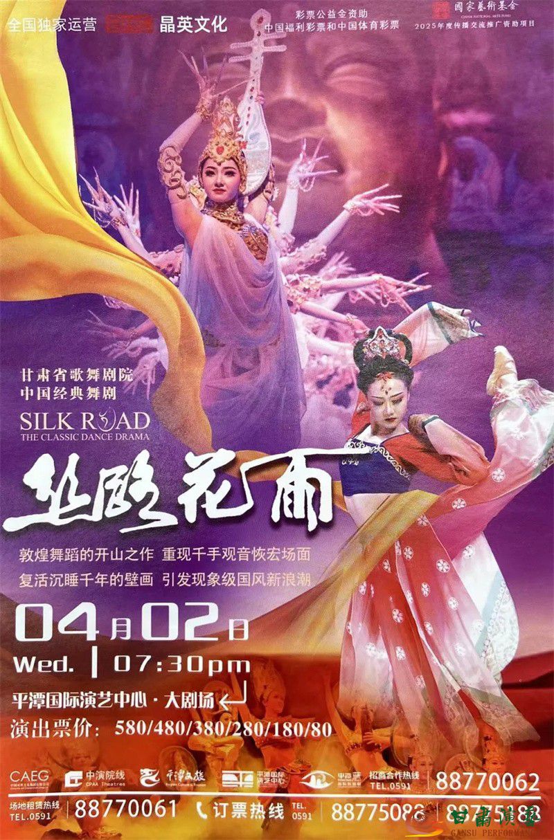 4月2日,由甘肅演藝集團歌舞劇院呈現(xiàn)的國家藝術(shù)基金2025年度傳播交流推廣資助項目——中國經(jīng)典舞劇《絲路花雨》,在福建平潭國際演藝中心成功上演。恰逢春日,這部被譽為“活的敦煌壁畫 美的藝術(shù)享受”的舞劇瑰寶,攜千年文化底蘊,為海島的融融春意增添了一抹藝術(shù)華彩。此次巡演獲國家藝術(shù)基金資助,不僅是對劇目藝術(shù)價值的肯定,更彰顯了國家對傳統(tǒng)文化傳承與創(chuàng)新的支持。