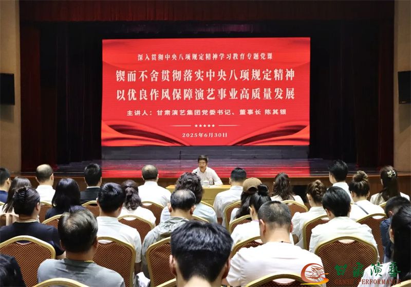 6月30日,甘肅演藝集團黨委書記、董事長陳其銀以“鍥而不舍貫徹落實中央八項規(guī)定精神,以優(yōu)良作風保障演藝事業(yè)高質量發(fā)展”為主題,為甘肅演藝集團歌舞劇院班子成員、中層干部、全體黨員及發(fā)展對象上了一堂內涵深刻、針對性強的“作風建設必修課”。