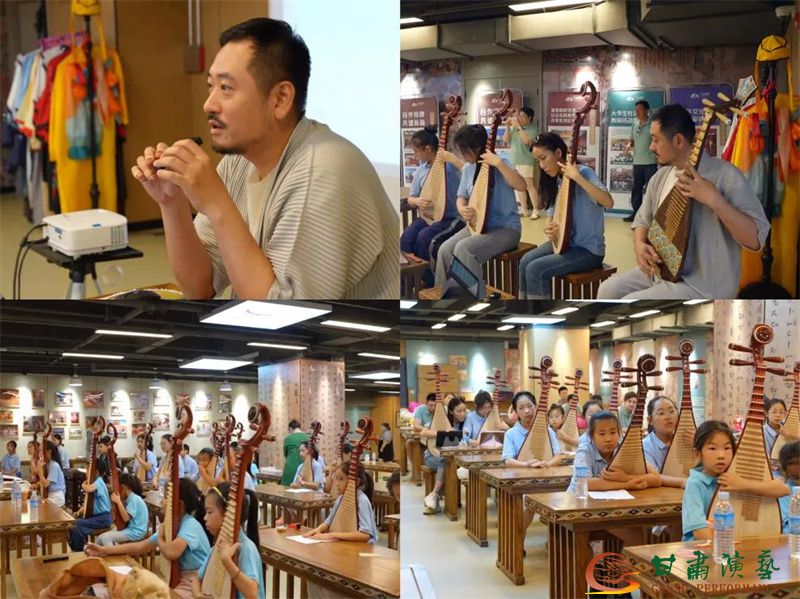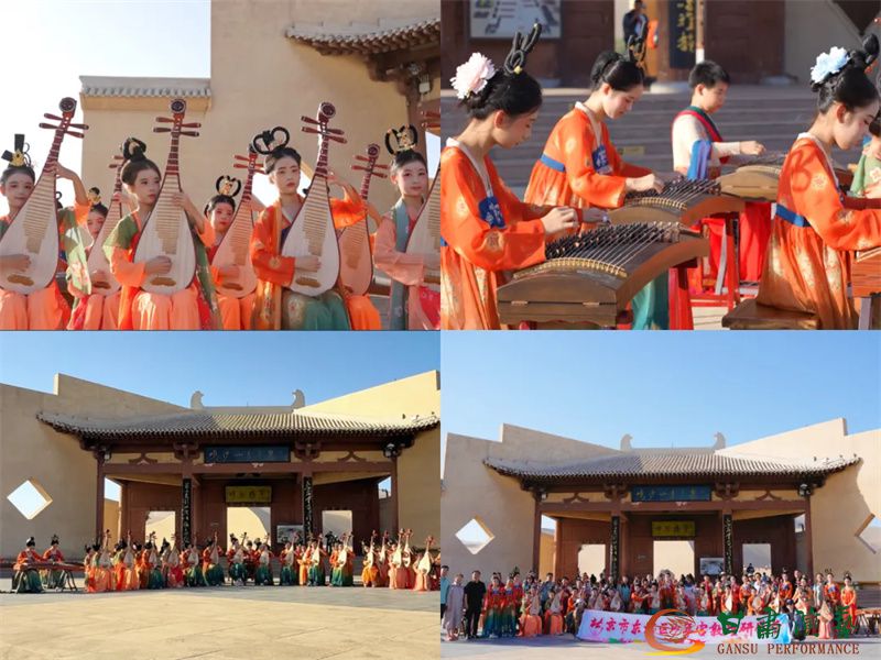 古樂研習課是貫穿始終的華彩樂章。在琵琶、古箏演奏家、敦煌古樂團團長章益的專業(yè)指導下,少年們沉浸于《傳奇·敦煌妙音》彈撥樂研習課,指尖流淌出千年古譜的悠遠回響。這份傳承在鳴沙山月牙泉畔升華:身著飛天服飾的少年們懷抱琵琶、端坐撫箏,古樸旋律與沙鳴泉韻交織共鳴,千年絲路遺韻在當代少年手中煥發(fā)新生。