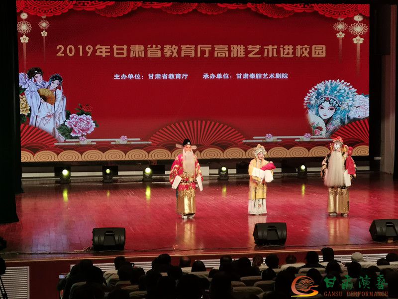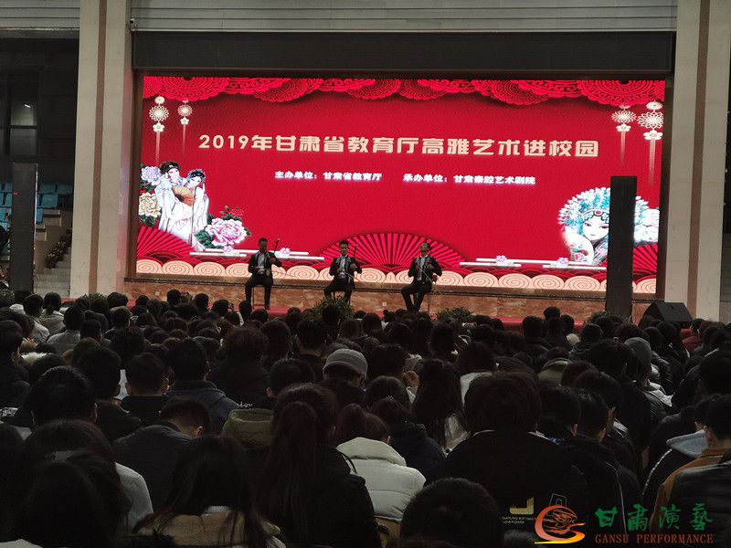 2019年12月7日以來,甘肅演藝集團秦腔藝術劇院分別赴甘肅工業(yè)職業(yè)技術學院、甘肅機電職業(yè)技術學院、天水師范學院、甘肅林業(yè)職業(yè)技術學院、隴東學院、甘肅建筑職業(yè)技術學院、甘肅財貿職業(yè)學院、甘肅現代職業(yè)技術學院和河西學院等9所院校舉辦了“2019年甘肅省教育廳高雅藝術進校園”演出活動,共有五千余名師生在現場了解了家級非物質文化遺產板胡項目——甘肅秦腔(西秦腔)發(fā)展歷史、各行當的特色及表演技巧,同時欣賞了秦腔經典劇目清唱、折子戲片段表演、舞蹈、器樂獨奏、變臉及戲曲技巧展示。