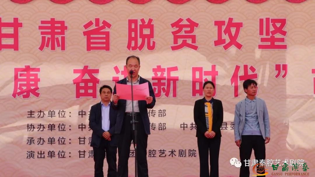 由中共甘肅省委宣傳部主辦,甘肅演藝集團(tuán)承辦,中共定西市委宣傳部、中共通渭縣委宣傳部協(xié)辦,甘肅演藝集團(tuán)秦腔藝術(shù)劇院演出的甘肅省脫貧攻堅(jiān)“同心奔小康 奮進(jìn)新時(shí)代”市州巡演及“2020年隴原紅色文藝輕騎兵”演出于2020年6月17日在定西市通渭縣南苑體育場(chǎng)舉行了啟動(dòng)儀式,開(kāi)啟了秦腔藝術(shù)劇院在定西地區(qū)12場(chǎng)基層文化惠民演出的序幕。