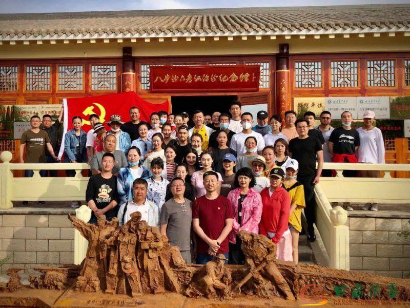 演出結(jié)束后,為了紀(jì)念特殊的時(shí)刻,甘肅演藝集團(tuán)敦煌藝術(shù)團(tuán)黨總支又組織所有黨員和全體演職人員前往古浪縣八步沙林場,參觀了八步沙六老漢治沙紀(jì)念館。以別樣的形式為自己的“生日”慶祝。大家來到紀(jì)念館,被大門及兩側(cè)立柱上懸掛的三副對(duì)聯(lián)所深深吸引——“六老漢,三代人,生命還原綠色;八步沙,數(shù)十載,青春鎖住黃龍?!?“一腔熱血,縛黃龍,造人間勝境;兩手老繭,栽綠樹,繪古浪宏圖?!?“當(dāng)代愚公,心凝大漠追紅日;英雄群體,意貫荒原變綠洲?!蔽淖盅院喴赓W,意境悠遠(yuǎn)。進(jìn)入紀(jì)念館,大家一邊認(rèn)真聆聽著講解員的講解,一邊仔細(xì)觀看展館內(nèi)的大量圖片、實(shí)物、影視、蠟像等,感受八步沙六老漢三代人情系家園、艱苦奮斗的創(chuàng)業(yè)精神以及接續(xù)奮斗、久久為功的堅(jiān)定信念。整個(gè)展覽,就是八步沙六老漢三代人前赴后繼、矢志不渝同沙海較量的縮影,是一幕幕戰(zhàn)天斗地的英雄往事,是一曲曲感天動(dòng)地的時(shí)代壯歌,是一個(gè)個(gè)令人敬佩的先進(jìn)典型。沿著紀(jì)念館“遺夢、尋夢、追夢、筑夢、圓夢”的時(shí)間軸,回望過去,感慨現(xiàn)在,從凝聚著八步沙三代愚公激情與悲壯、成就與輝煌的感人事跡中,深深感受到他們堅(jiān)守與奮斗的壯舉,深切領(lǐng)悟到他們信念與意志的傳奇。