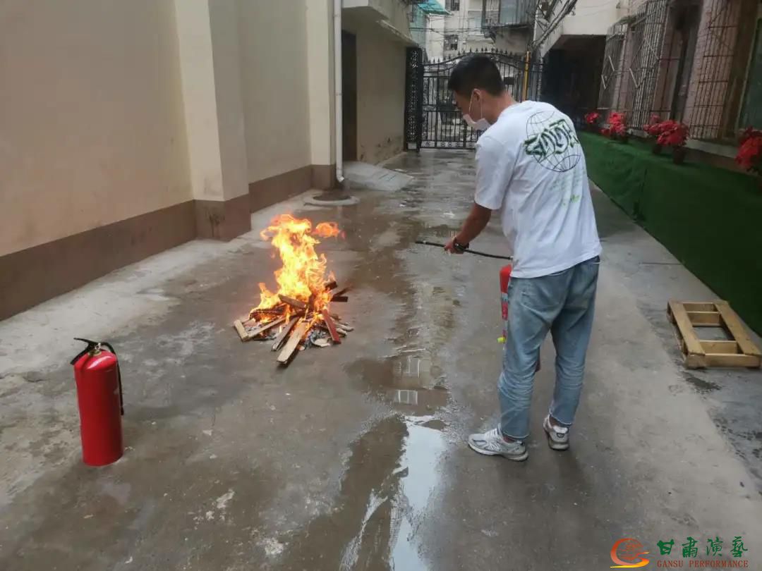 講座結(jié)束后,甘肅省隴劇院全體職工還組織開(kāi)展了消防演練。張玉龍教官為在場(chǎng)人員演示如何使用干粉滅火器,甘肅省隴劇院職工在有專業(yè)指導(dǎo)的情況下,順利使用滅火器撲滅模擬火災(zāi)。