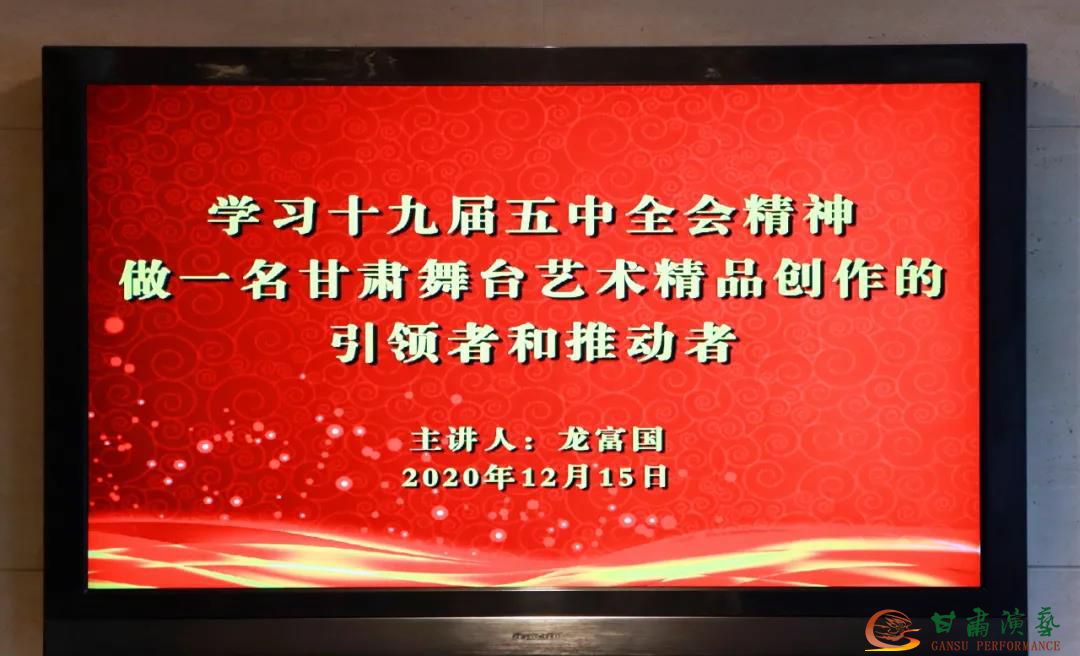 12月15日上午10時(shí),甘肅演藝集團(tuán)黨委副書記、監(jiān)事會(huì)主席、藝術(shù)總監(jiān)龍富國(guó)同志到甘肅演藝集團(tuán)歌舞劇院宣講黨的十九屆五中全會(huì)精神,活動(dòng)由院黨總支書記、院長(zhǎng)李金江同志主持,院黨總支成員、中層干部、各支部書記及黨務(wù)辦公室全體人員共計(jì)20余人參加。