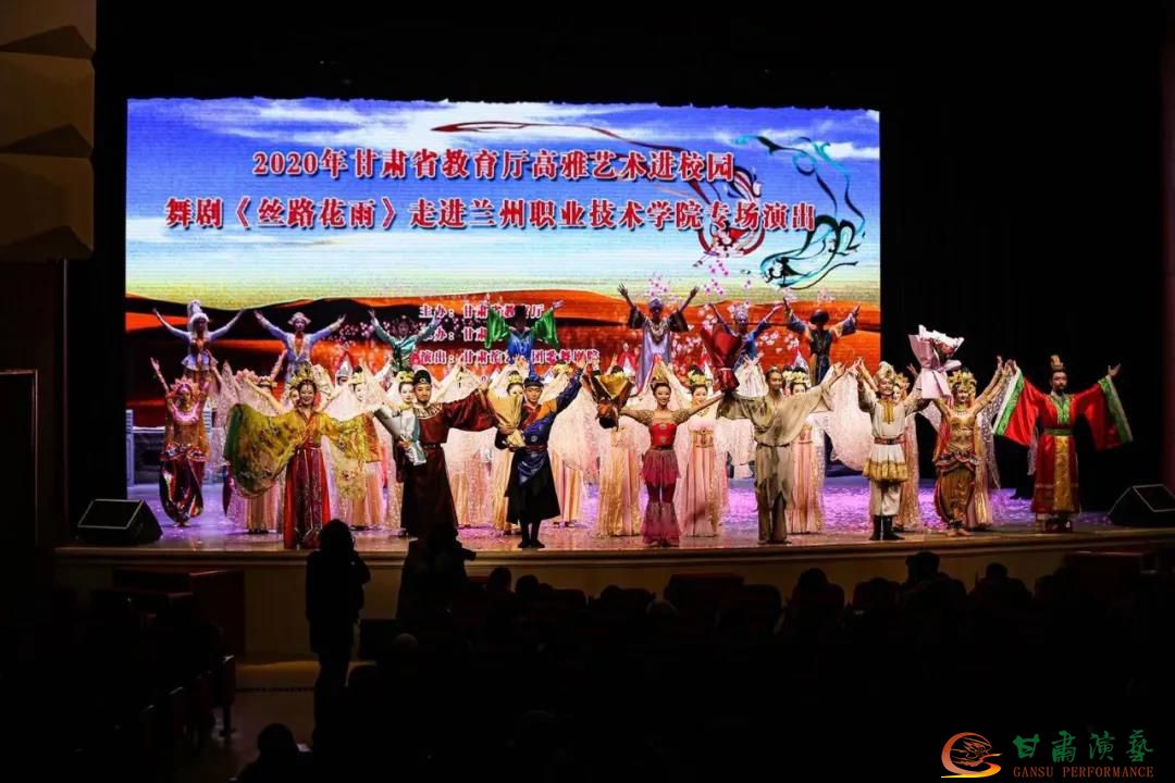 2020年“甘肅省教育廳高雅藝術(shù)進校園”活動于11月29日、30日來到蘭州職業(yè)技術(shù)學(xué)院,甘肅演藝集團歌舞劇院帶來的中國經(jīng)典舞劇《絲路花雨》連續(xù)兩晚震撼上演,精彩絕倫的表演獲得廣大師生交口稱贊。本活動由甘肅省教育廳主辦,甘肅演藝集團承辦。