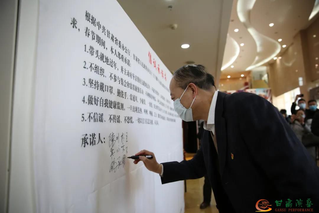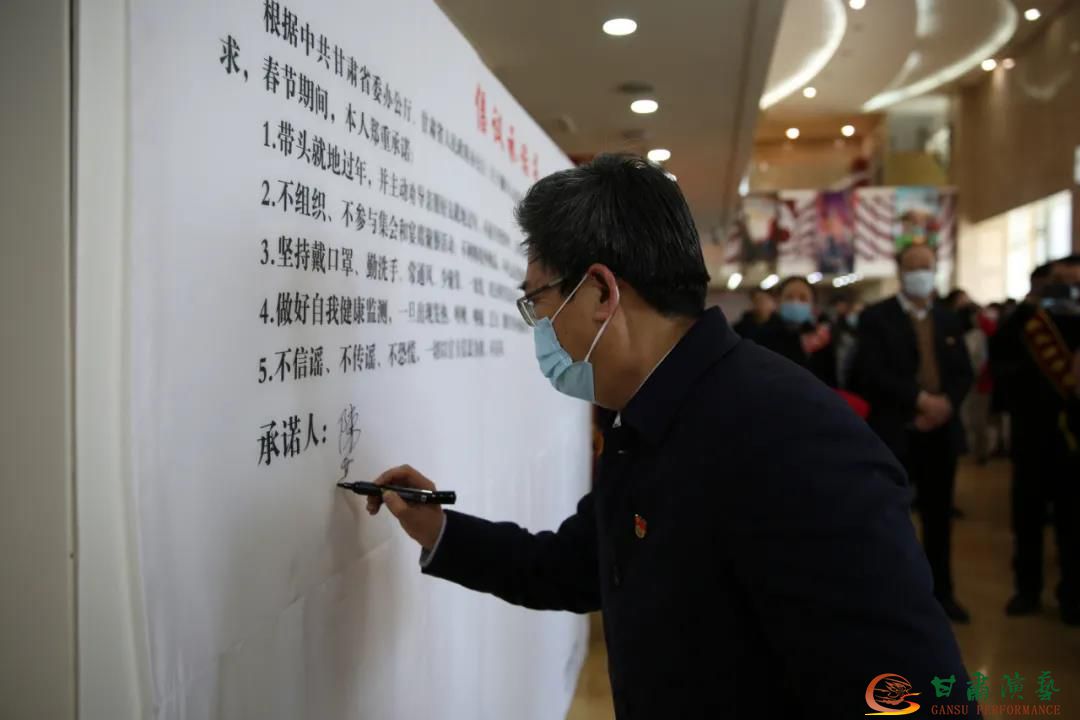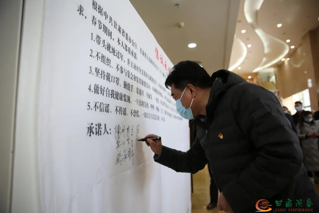 根據中共甘肅省委辦公廳、甘肅省人民政府辦公廳《關于做好人民群眾就地過年服務保障工作的通知》(甘辦發(fā)電〔2021〕19號)要求,在甘肅演藝集團黨委書記、董事長陳其銀及集團領導班子成員的帶領下,所有參加活動的黨員及入黨積極分子簽訂帶頭就地過年倡議承諾書。