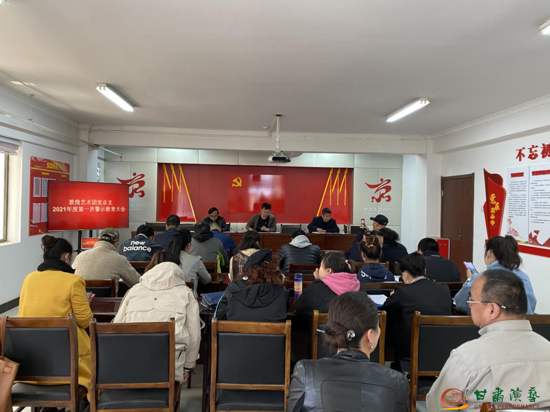 為慶祝中國共產(chǎn)黨建黨100周年,教育引導(dǎo)全體黨員干部深刻領(lǐng)會習(xí)近平新時代中國特色社會主義思想,用黨的創(chuàng)新理論武裝頭腦,4月16日,敦煌藝術(shù)團(tuán)黨總支在黨史學(xué)習(xí)教育深化學(xué)習(xí)中,開展了“履行管黨治黨責(zé)任,加強(qiáng)警示教育工作”2021年度第一季度警示教育大會。會議由敦煌藝術(shù)團(tuán)黨總支書記吳雪林主持,黨總支全體黨員參加了此次會議。