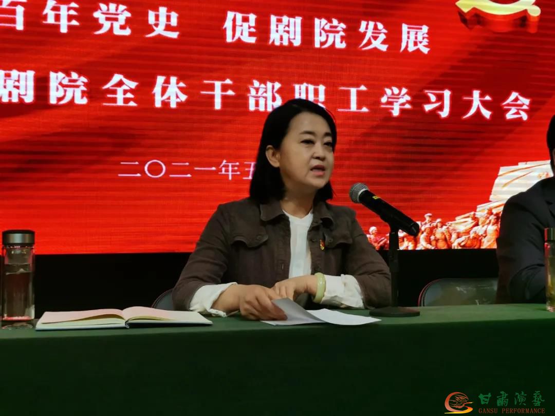 5月11日上午,甘肅省隴劇院黨總支組織第一支部、第二支部以及全體干部職工在百姓戲曲劇場(chǎng)召開“學(xué)百年黨史 促劇院發(fā)展”主題學(xué)習(xí)大會(huì),會(huì)議由第一支部書記、副院長(zhǎng)竇鳳霞主持。