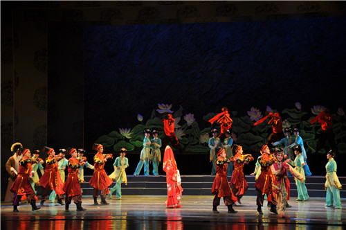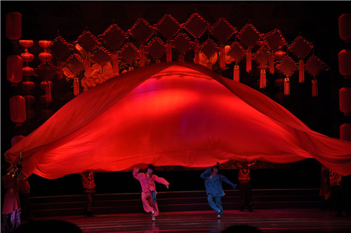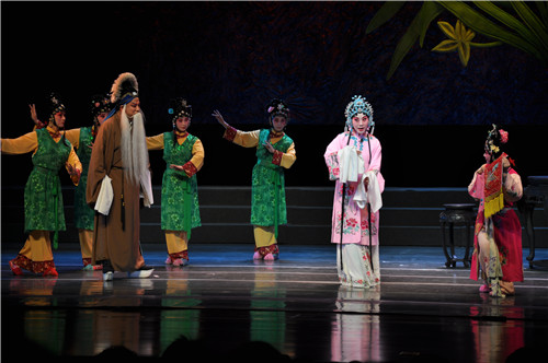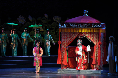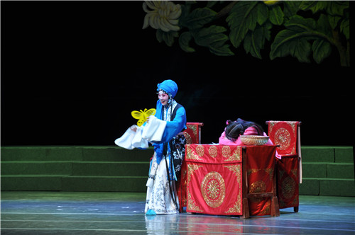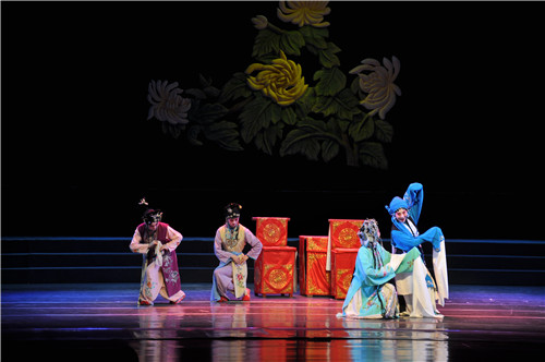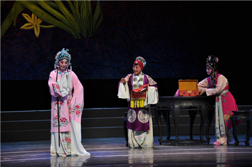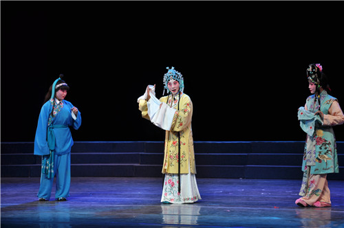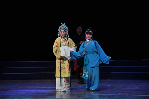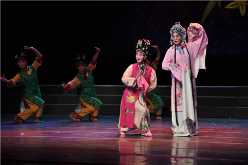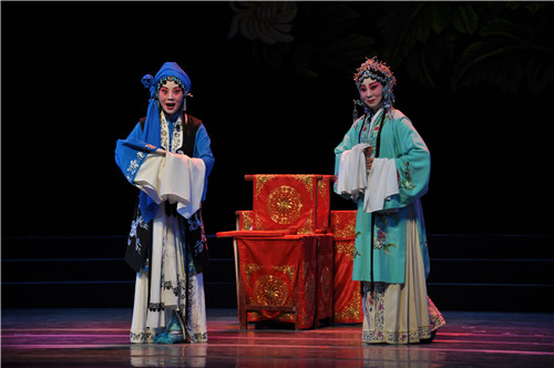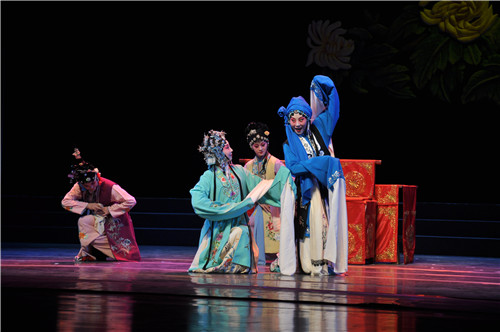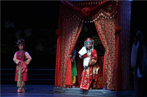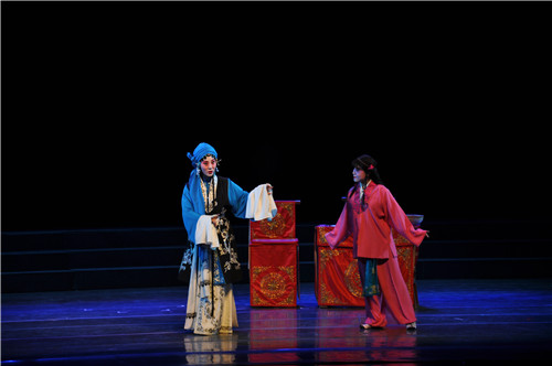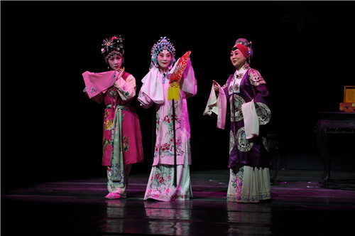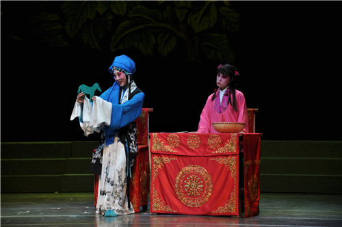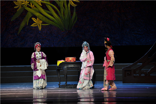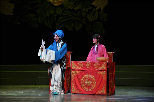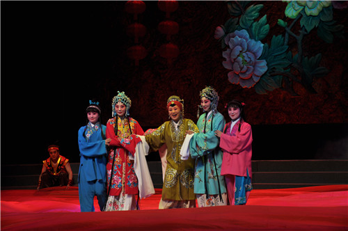 麟兒玩耍中拋球入一小樓,促湘靈去取,湘靈登樓,見昔日之"鎖麟囊"供奉桌上,不覺感涕。趙守貞見狀盤詰,方知湘靈為當(dāng)年贈(zèng)囊之人,敬為上賓,結(jié)為金蘭,助湘靈一家團(tuán)圓。