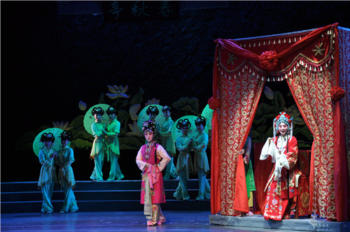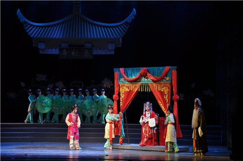 薛湘靈出嫁當(dāng)日,中途遇雨,在"春秋亭"暫避,恰遇同日出嫁的貧家女子趙守貞,趙感嘆家境貧寒、世態(tài)炎涼,在破舊的花轎中悲慟,湘靈聞知,慨然以"鎖麟囊"相贈(zèng)。