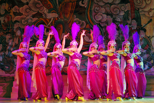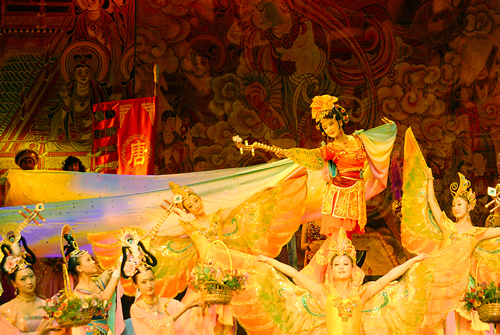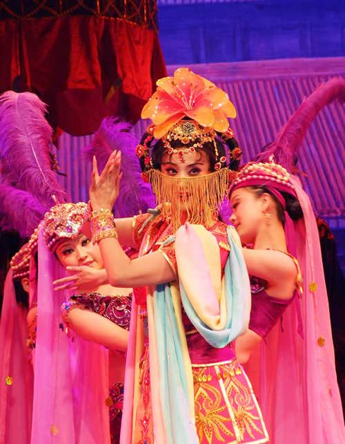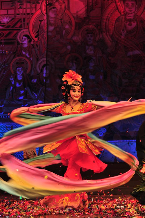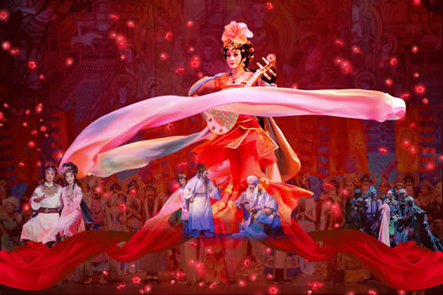 絲綢之路漫長久遠(yuǎn),敦煌壁畫舉世聞名。以京劇的形式,賦予舞劇《絲路花雨》新的內(nèi)容,高揚(yáng)和平、發(fā)展、合作的世紀(jì)主旋,以敦煌藝術(shù)為文化底蘊(yùn),再譜一曲絲綢之路的友誼頌歌!