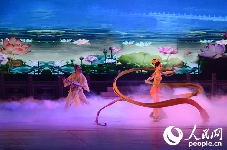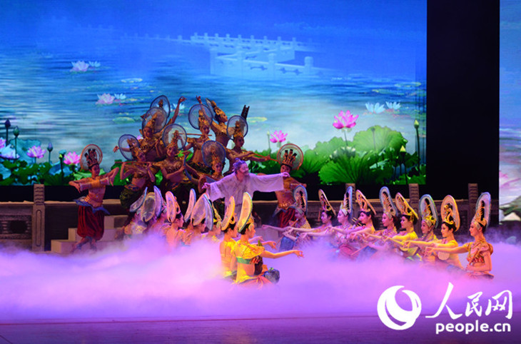 《絲路花雨》通過多變的舞美場景、豐富的舞蹈造型、唯美的舞姿講述了一個發(fā)生在絲綢之路上的凄美動人故事。它不僅融合了中國古典舞、敦煌舞、印度舞、黑巾舞、波斯馬鈴舞等多種形式,還創(chuàng)新性地融入了很多現(xiàn)代舞元素,源于敦煌壁畫的飛天造型、反彈琵琶的優(yōu)美舞姿、變幻無窮的千手觀音場景,讓無論是偏愛傳統(tǒng)文化還是時尚文化的觀眾都沉浸其中。演出結(jié)束后,全場觀眾起立向演員報以熱烈的掌聲。