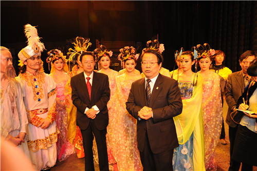 2012年4月,為紀(jì)念中日邦交正?;?0周年,文化部與中國駐日本大使館于4月10日晚在東京舉辦中日國民交流友好年開幕式,《絲路花雨》于日本東京東急文化村果園劇場參加開幕式演出。中國政府特使、文化部部長蔡武,中國駐日本大使程永華,日本內(nèi)閣官房長官藤村修、日本經(jīng)濟(jì)團(tuán)體聯(lián)合會(huì)會(huì)長米倉弘昌等出席開幕式并與2000多名日本各界觀眾觀看演出。演出結(jié)束后,蔡武和程永華,接見了全體演職人員,并發(fā)表了熱情洋溢的講話。高度評(píng)價(jià)甘肅省在文化建設(shè)上取得的成就,高度評(píng)價(jià)舞劇《絲路花雨》獨(dú)特的藝術(shù)魅力。