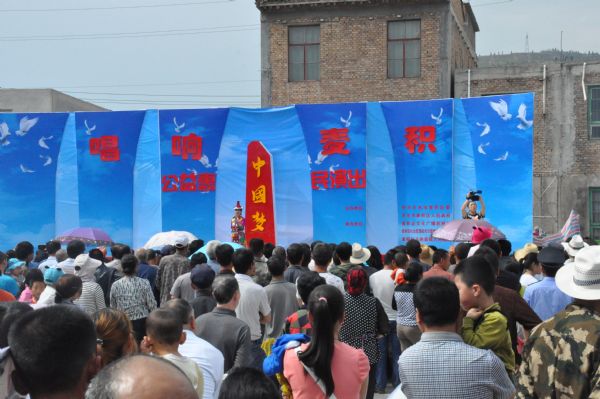2015年6月4日,60名演職人員驅(qū)車赴天水市麥積區(qū)。到達目的地后,舞臺、舞美工作人員顧不上旅途勞頓連夜裝臺。5日一大早全體演職人員就位進行了嚴(yán)謹(jǐn)、規(guī)范的彩排工作。下午13時30分,演出在天水市麥積區(qū)馬跑泉鎮(zhèn)廣場正式拉開了帷幕。