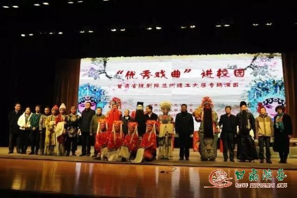12月2日晚,由省教科文衛(wèi)工會(huì)和蘭州理工大學(xué)工會(huì)聯(lián)合舉辦的“優(yōu)秀戲曲進(jìn)校園”活動(dòng)在大學(xué)體育館盛大開演。甘肅省隴劇院由竇鳳霞(國家一級(jí)演員、中國戲劇“梅花獎(jiǎng)”獲得者)、張保利(國家二級(jí)演員、甘肅戲劇“紅梅獎(jiǎng)”金獎(jiǎng)獲得者)、譚強(qiáng)(甘肅戲劇“紅梅獎(jiǎng)”金獎(jiǎng)獲得者)、邵炳德(甘肅戲劇紅梅獎(jiǎng)一等獎(jiǎng)獲得者)、權(quán)燕婷(甘肅戲劇紅梅獎(jiǎng)一等獎(jiǎng)獲得者)、段宏娟(甘肅戲劇紅梅獎(jiǎng)二等獎(jiǎng)獲得者)等青年優(yōu)秀演員演出了經(jīng)典隴劇折子戲《百花公主》、《跌雪》、《三娘教子》、《斬秦英》、《挑袍》,鏗鏘有力的唱腔、節(jié)奏明快的鑼鼓,贏得陣陣掌聲。此次“優(yōu)秀戲曲進(jìn)校園”活動(dòng)為大學(xué)生們傳承了中華民族傳統(tǒng)戲曲文化,激起了大學(xué)生對(duì)加強(qiáng)學(xué)習(xí)國學(xué)的渴望,陶冶了大學(xué)生藝術(shù)情操,為理工大學(xué)廣大教職工奉獻(xiàn)了一場(chǎng)精彩的傳統(tǒng)戲曲表演。(圖文由省隴劇院提供)