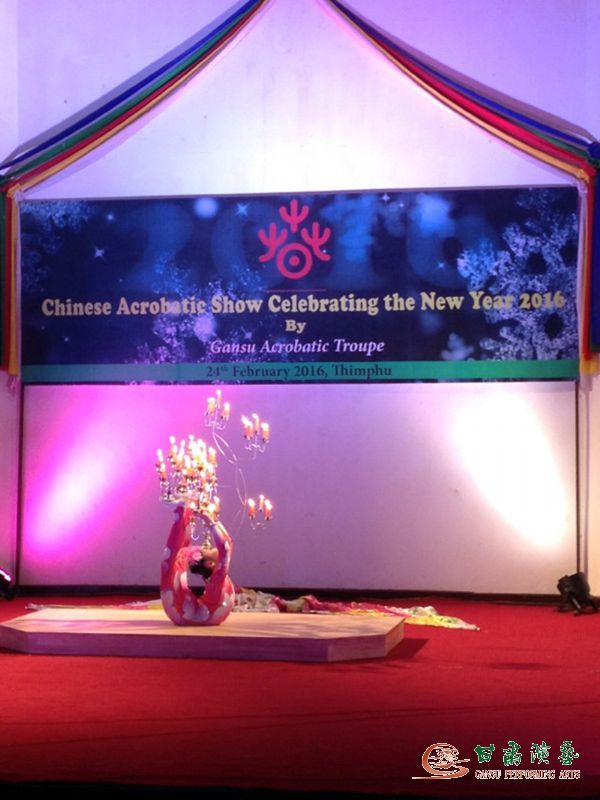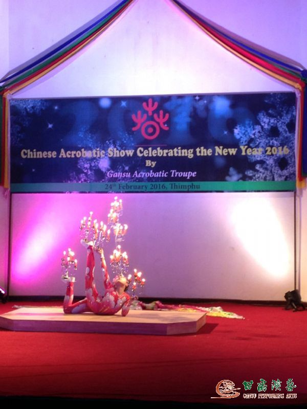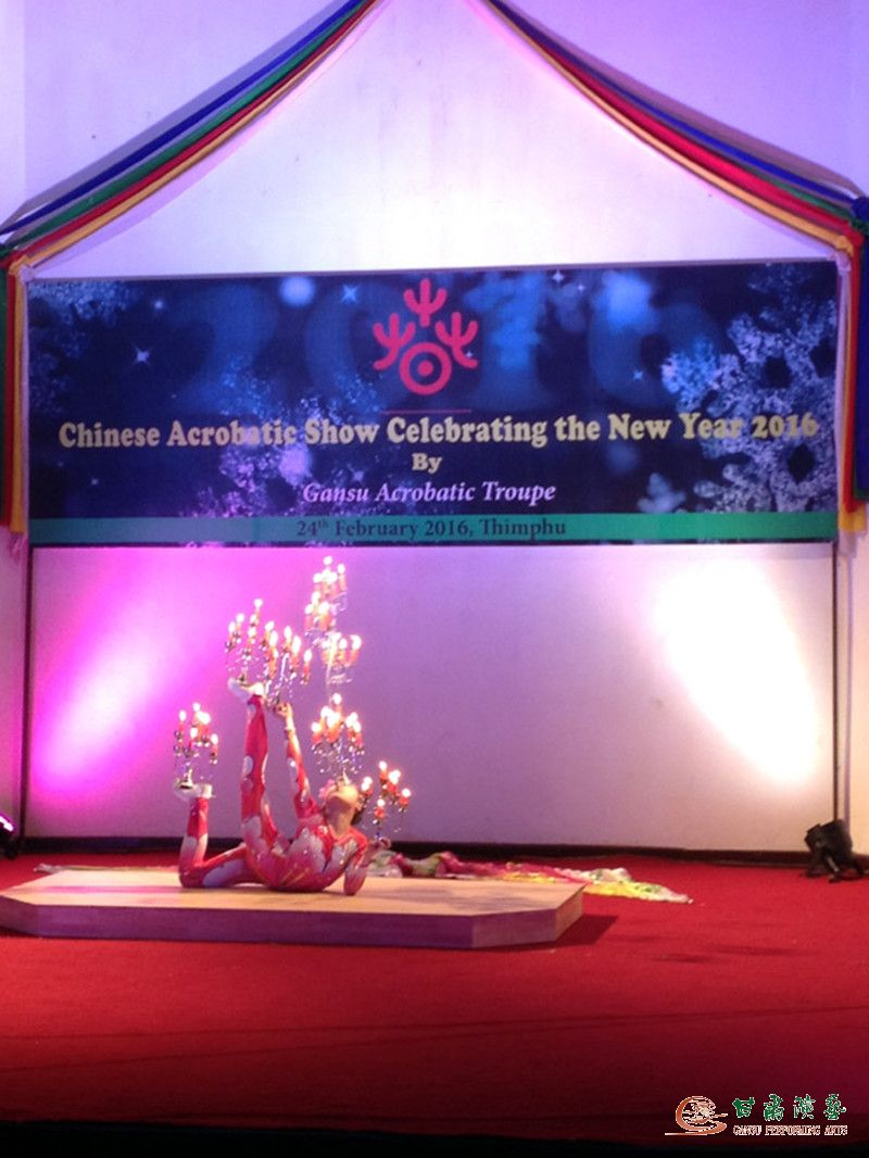 2016年2月24日,甘肅省雜技團(tuán)赴不丹首都廷布參加“歡樂春節(jié)”活動(dòng),以雜技藝術(shù)的彩帶架設(shè)起友誼的橋梁,讓外國友人了解中國春節(jié)文化、分享節(jié)日歡樂。