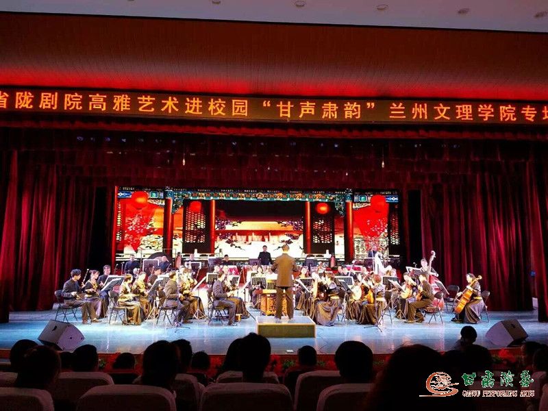 5月22日晚,甘肅省隴劇院攜手甘肅省文化廳、蘭州文理學(xué)院舉辦高雅藝術(shù)進校園專場演出,此次演出甘肅省隴劇院院長楊波、副院長薛磊,校黨委書記史百戰(zhàn)、張兆勤副校長和文理學(xué)院師生500人共同觀看。此次演出共有11個節(jié)目。演出以大型民族管弦樂《甘聲肅韻》開場,他們由國家一級演員、梅花獎獲得者:竇鳳霞、佟紅梅、雷通霞等藝術(shù)家先后上演了隴劇《楓洛池》選段、二胡協(xié)奏曲《西峽隨想》、女聲獨唱《想隴東?回隴東》、女聲獨唱《追尋》、隴劇《穆桂英休夫》選段、板胡獨奏《秦腔牌子曲》、男聲獨唱《問黃河》、秦腔《王桂花紡線》選段等,精彩的節(jié)目在精彩的掌聲以及喝彩聲中以民族交響樂《拉德斯基進行曲》落下帷幕,取得圓滿成功。