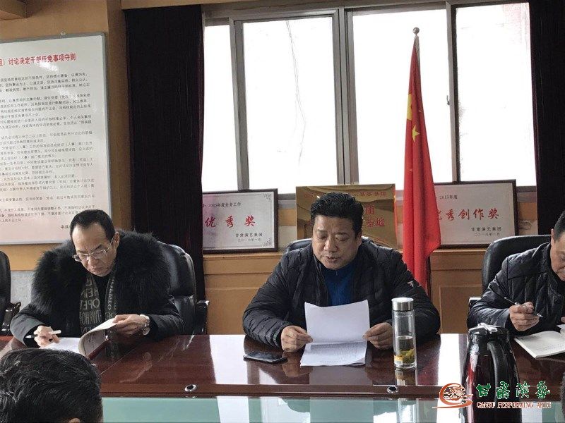 會(huì)議由院長助理王為民同志主持,王存院長轉(zhuǎn)達(dá)了省委宣傳部副部長、省文化廳黨組書記、廳長高志凌同志對省隴劇院的批示及高志凌廳長《在2018年全省文化和新聞出版廣播影視工作會(huì)議上的講話》;王為民助理全文傳達(dá)了省文化廳黨組成員、副廳長楊建仁同志《在省隴劇院領(lǐng)導(dǎo)干部宣布大會(huì)上的講話》及《文化要訊-----省隴劇院召開全體職工大會(huì)宣布王存任院長》等。