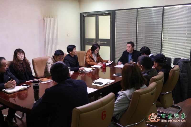 2018年11月16日上午,崔華功同志召集業(yè)務(wù)相關(guān)部門負(fù)責(zé)人召開了業(yè)務(wù)工作會(huì)議,蘇鳳麗同志出席了會(huì)議。會(huì)議就落實(shí)甘肅演藝集團(tuán)安排的元旦、春節(jié)相關(guān)演出事宜進(jìn)行了安排部署,并對(duì)演出中外請(qǐng)人員的協(xié)議、近期其他排練工作和演出工作進(jìn)行會(huì)議研究和安排。