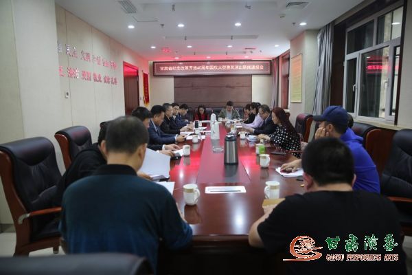 會(huì)議由甘肅演藝集團(tuán)副總經(jīng)理龍富國住持,他指出,今年是中國共產(chǎn)黨帶領(lǐng)全國各族人民堅(jiān)持改革開放40年,取得舉世矚目偉大成就的一年,也是我省文藝工作者銳意改革、拼搏進(jìn)取的一年。十月的金城蘭州,金風(fēng)送爽、瓜果飄香,這是收獲的季節(jié),恰逢新中國69周年華誕,在這個(gè)美好日子,為了表達(dá)甘肅演藝集團(tuán)全體藝術(shù)工作者的初心和使命,以及與全省人民歡度國慶、同賀改革開放40周年的喜悅之情,在省委、省政府的大力支持下,我們將于9月30日至10月8日在蘭州大劇院舉辦“紀(jì)念改革開放40周年國慶大型惠民演出”活動(dòng)。我們期望通過這次惠民演出活動(dòng),使金城蘭州的廣大藝術(shù)愛好者欣賞到高雅的舞臺(tái)藝術(shù)精品,享受到豐富的文化藝術(shù)大餐。同時(shí),也通過演出活動(dòng),讓廣大市民感受到我國改革開放40年來經(jīng)濟(jì)社會(huì)發(fā)展帶來的豐碩成果。
