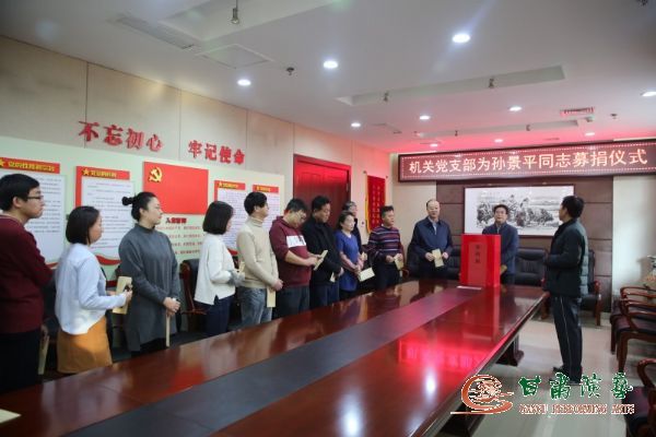 甘肅省話劇院退休職工孫景平同志因患尿毒癥,嚴(yán)重腎衰竭,每周至少需要透析3次,每月治療費(fèi)除醫(yī)保報(bào)銷(xiāo)外還需3000元左右,隨著病情加重,醫(yī)療費(fèi)逐步加大,孫景平個(gè)人已經(jīng)無(wú)力承擔(dān)。甘肅省話劇院黨總支積極組織本院黨員干部和職工募捐,但仍是杯水車(chē)薪。為此,甘肅省話劇院黨總支向集團(tuán)所屬各院團(tuán)發(fā)起了募捐倡議。11月14日,集團(tuán)黨委書(shū)記、董事長(zhǎng)陳其銀同志接到募捐倡議后,立即作出批示,要求相關(guān)部門(mén)做好募捐工作,并以個(gè)人名義捐款1000元。集團(tuán)黨委委員、副總經(jīng)理王衛(wèi)平、龍富國(guó)同志也立即響應(yīng),捐款1000元,以實(shí)際行動(dòng)向廣大黨員干部和職工發(fā)出了倡議。為積極響應(yīng)集團(tuán)領(lǐng)導(dǎo)的倡議,踐行學(xué)習(xí)《榜樣3》英模精神,將機(jī)關(guān)黨支部學(xué)習(xí)《英雄3》活動(dòng)引向深入,集團(tuán)機(jī)關(guān)黨支部組織了這次募捐活動(dòng)。活動(dòng)得到了廣大黨員干部和職工的熱烈響應(yīng),在積極捐款的同時(shí)還通過(guò)電話、微信等方式向?qū)O景平同志表示慰問(wèn)。共募集善款7150元人民幣,將以支部名義交付孫景平同志。(機(jī)關(guān)黨支部供稿、網(wǎng)絡(luò)信息中心供圖)