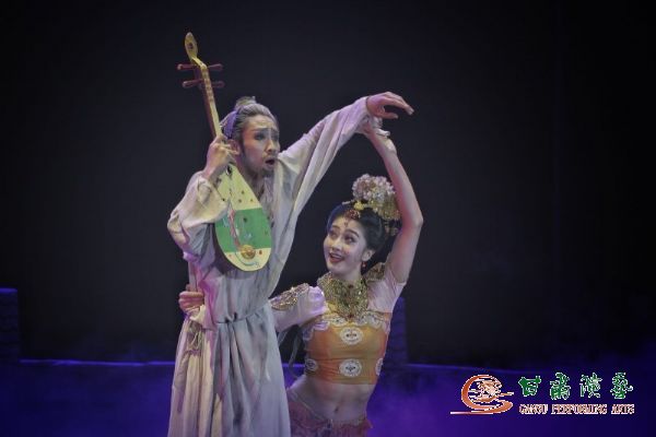 在領(lǐng)導(dǎo)致辭和互換禮物環(huán)節(jié)之后,輕靈的樂聲緩緩響起,大幕徐徐拉開,演員們用唯美的肢體語言,為觀眾撥開千年時(shí)空迷霧,現(xiàn)場(chǎng)頓時(shí)響起熱烈的掌聲,被獨(dú)特的開場(chǎng)序幕《金光千佛》所震撼。在整個(gè)演出過程中,曲折動(dòng)人的故事情節(jié),伴隨著優(yōu)美的音樂旋律和美輪美奐、變幻多姿的舞臺(tái)布景,一次次將現(xiàn)場(chǎng)氣氛推向高潮,歡呼聲和贊嘆聲此起彼伏、不絕于耳,兩所大學(xué)共計(jì)四千五百多名師生觀看演出。