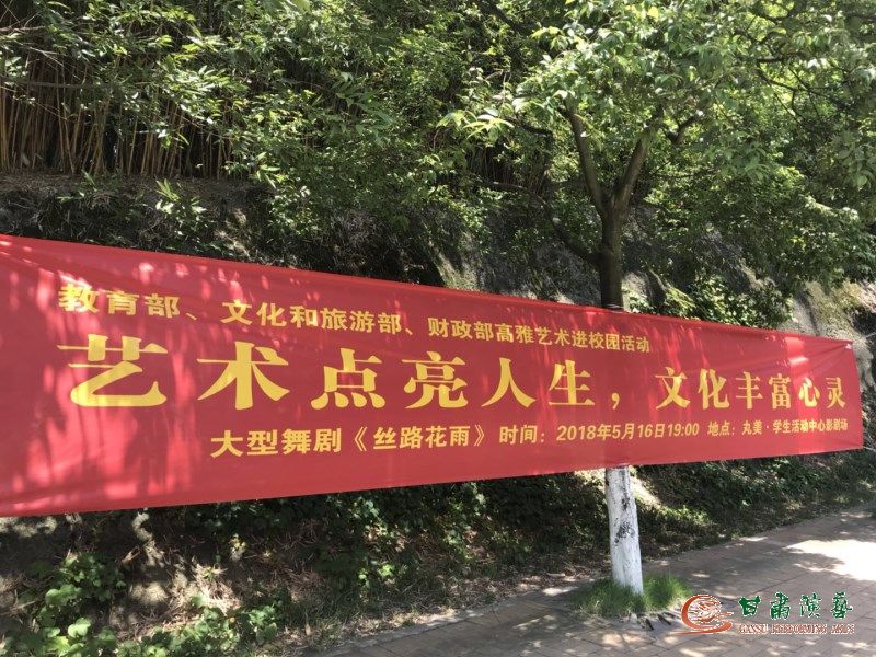 5月15—16日,教育部、文化和旅游部、財政部2018年“高雅藝術(shù)進校園”活動,甘肅省歌舞劇院攜舞劇《絲路花雨》分別走進重慶大學(xué)和重慶理工大學(xué),在兩所大學(xué)校園內(nèi)掀起了一場對于舞劇本身乃至絲綢之路、敦煌藝術(shù)的探討,使師生們感受到《絲》劇經(jīng)久不衰的藝術(shù)魅力。在演出前播放此次“高雅藝術(shù)進校園”視頻宣傳片和主持人的互動介紹中,讓觀眾們充分了解到“高雅藝術(shù)進校園”活動的初衷、主題、內(nèi)容,以及舞劇《絲路花雨》創(chuàng)作、發(fā)展,榮譽及劇情的詳細介紹,受到了大學(xué)生們的廣泛認同。演員謝幕后,廣大師生久久不愿離去,紛紛涌上舞臺與演員們合影,熱情發(fā)表感慨,以真情實感表達對《絲路花雨》劇組感謝之意。