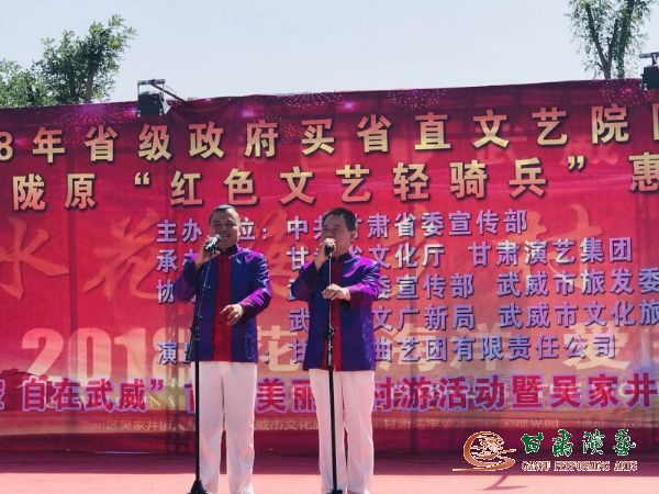 2018年7月28日早,由甘肅省委宣傳部主辦,甘肅省文化廳、省演藝集團(tuán)承辦,武威市委宣傳部、武威市旅發(fā)局、武威市文廣新局、武威市文化旅游協(xié)會(huì)協(xié)辦,甘肅省曲藝團(tuán)作為演出單位組織實(shí)施的隴原“紅色文藝輕騎兵”文化惠民演出活動(dòng)走進(jìn)了武威市涼州區(qū)吳家井鄉(xiāng)。