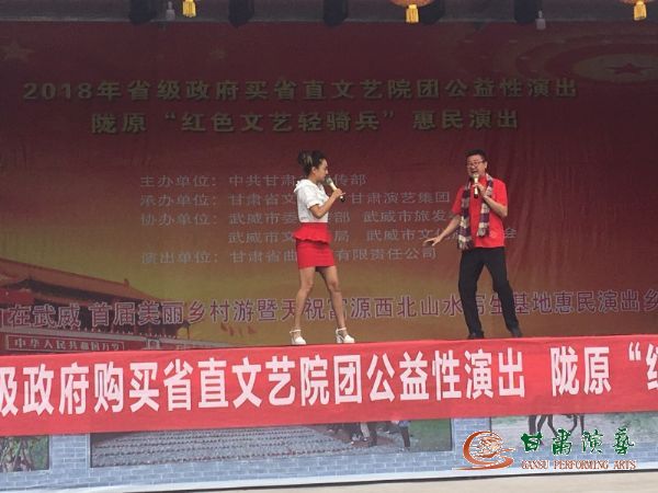 2018年8月18日早,甘肅省曲藝團(tuán)一眾演職人員乘車來到了武威市華藏寺鎮(zhèn)岔口驛村,準(zhǔn)備進(jìn)行隴原“紅色文藝輕騎兵”公益性惠民演出。