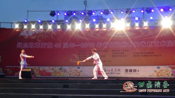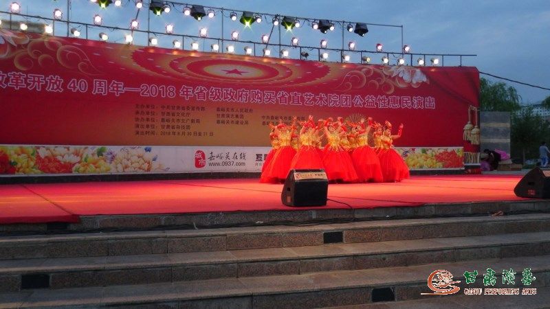 2018年8月30日,由甘肅省委宣傳部、嘉峪關(guān)市人民政府主辦,甘肅省文化廳、甘肅演藝集團(tuán)、嘉峪關(guān)市為宣傳部承辦的“改革開放四十年,2018省級(jí)政府購(gòu)買省直文藝院團(tuán)公益性惠民演出”在嘉峪關(guān)人民廣場(chǎng)隆重開演。
