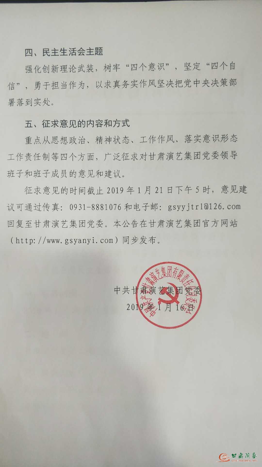 甘肅演藝集團(tuán)黨委領(lǐng)導(dǎo)班子2018年度民主生活會(huì)公告